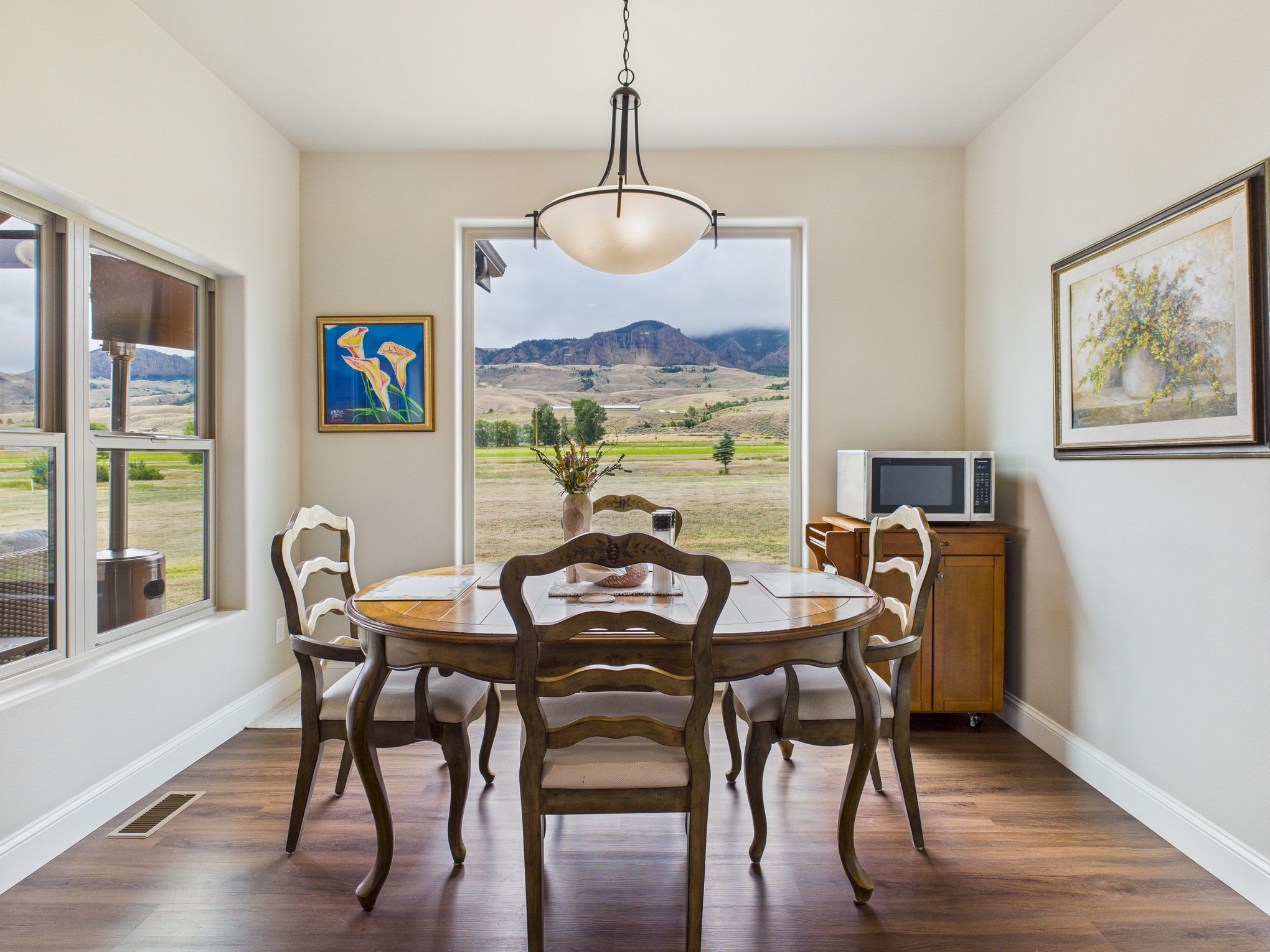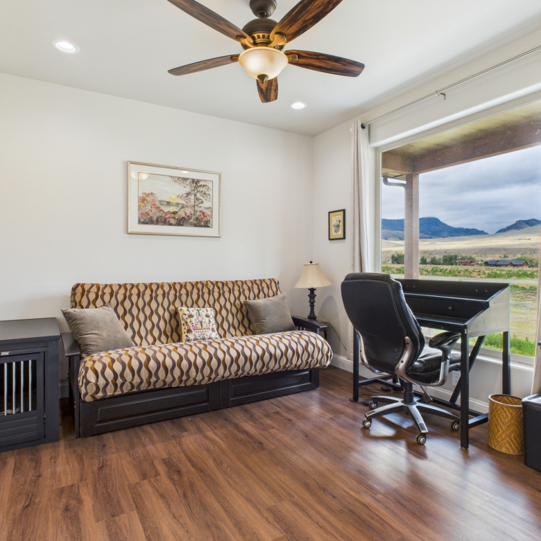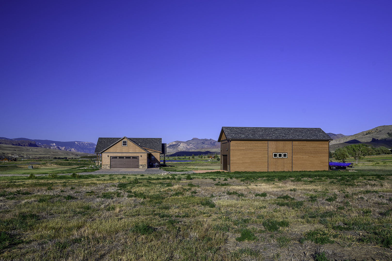 Welcome to a one-of-a-kind retreat where western beauty meets modern craftsmanship. Custom built in 2022 in Copperleaf—Wapiti Valley’s premier gated community—this home captures 360° mountain views with large picture windows and deck access from both the great room and primary suite. The open-concept design is ideal for hosting or relaxing, with handcrafted wood cabinetry, granite countertops, propane cooktop with vent hood, and built-ins throughout. Stain-resistant LVP flooring and heated tile in the primary bath make upkeep easy. Built for comfort and Wyoming durability, the home includes a tankless water heater, Trane A/C, Kohler whole-house generator, ventless propane fireplace, and oversized heated garage (26.2’ x 27’) with stairway to a private suite—perfect for guests or rental. The matching 24’ x 50’ shop has drive-through overhead doors, 16’ walls, and upper storage—ideal for trucks, toys, and tools. Designed for efficiency with Diamond Kote siding, Class 3 Malarkey shingles, insulated windows, and Fiburon decking. Copperleaf offers 1.5 miles of the Shoshone River and 300 acres of open space. A rare western haven built for adventure and ease.