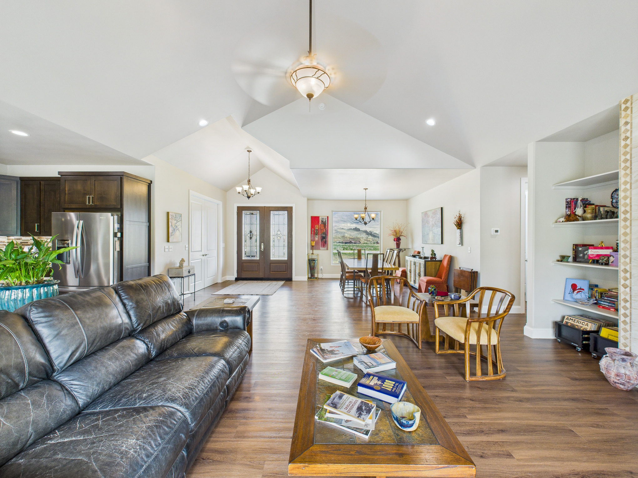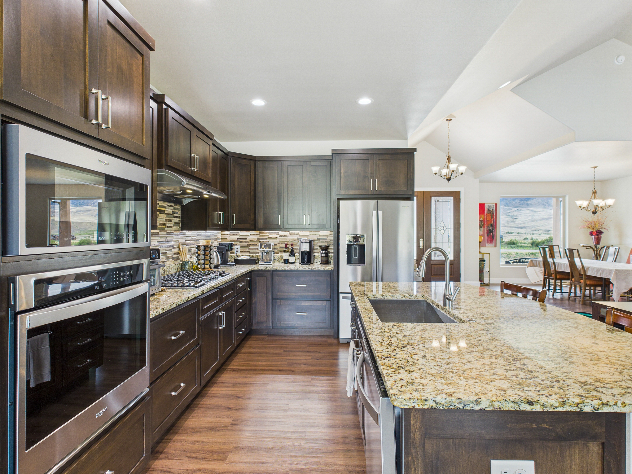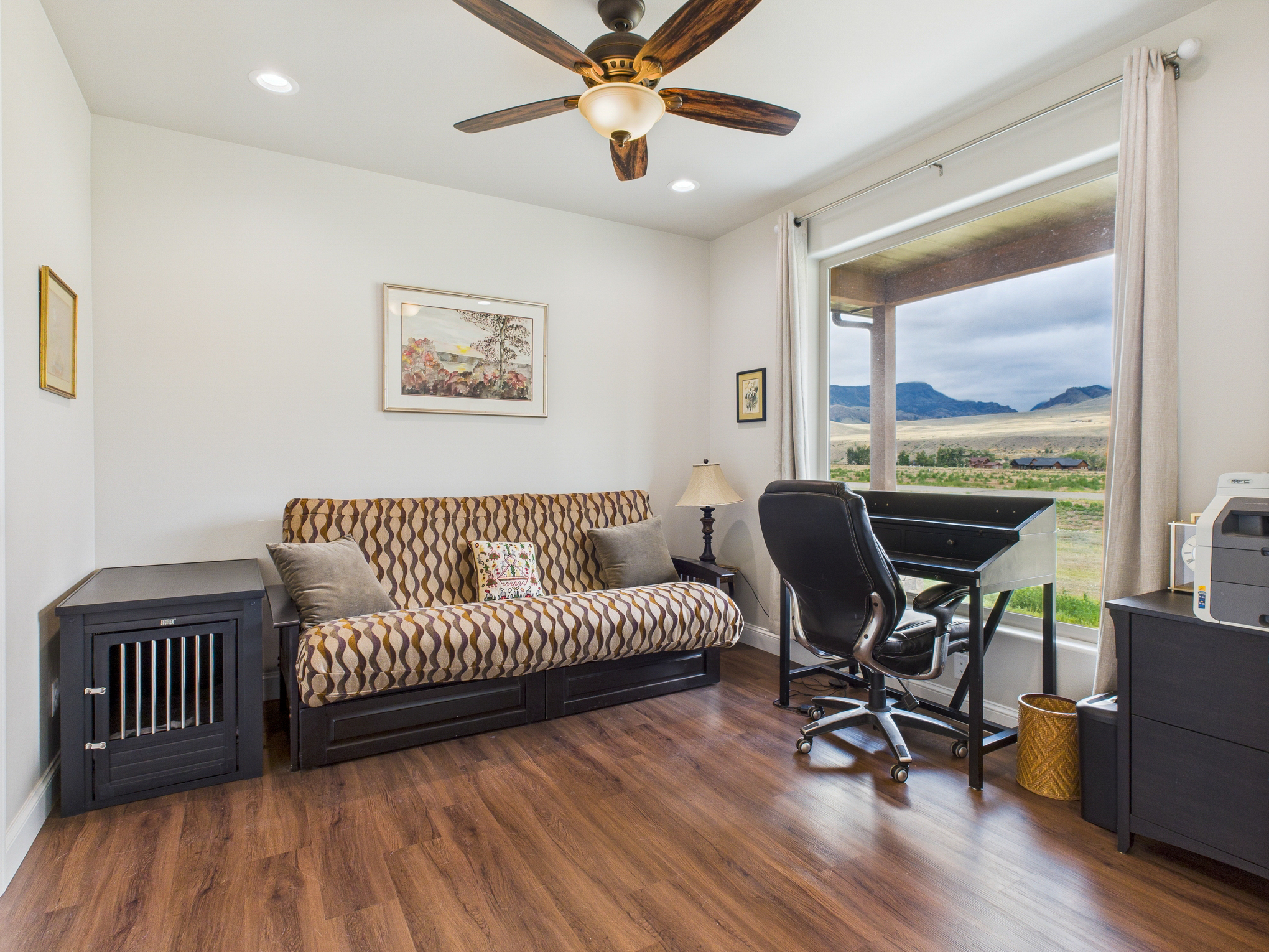 Welcome to a one-of-a-kind retreat where western beauty meets modern craftsmanship. Custom built in 2022 in Copperleaf—Wapiti Valley’s premier gated community—this home captures 360° mountain views with large picture windows and deck access from both the great room and primary suite. The open-concept design is ideal for hosting or relaxing, with handcrafted wood cabinetry, granite countertops, propane cooktop with vent hood, and built-ins throughout. Stain-resistant LVP flooring and heated tile in the primary bath make upkeep easy. Built for comfort and Wyoming durability, the home includes a tankless water heater, Trane A/C, Kohler whole-house generator, ventless propane fireplace, and oversized heated garage (26.2’ x 27’) with stairway to a private suite—perfect for guests or rental. The matching 24’ x 50’ shop has drive-through overhead doors, 16’ walls, and upper storage—ideal for trucks, toys, and tools. Designed for efficiency with Diamond Kote siding, Class 3 Malarkey shingles, insulated windows, and Fiburon decking. Copperleaf offers 1.5 miles of the Shoshone River and 300 acres of open space. A rare western haven built for adventure and ease.