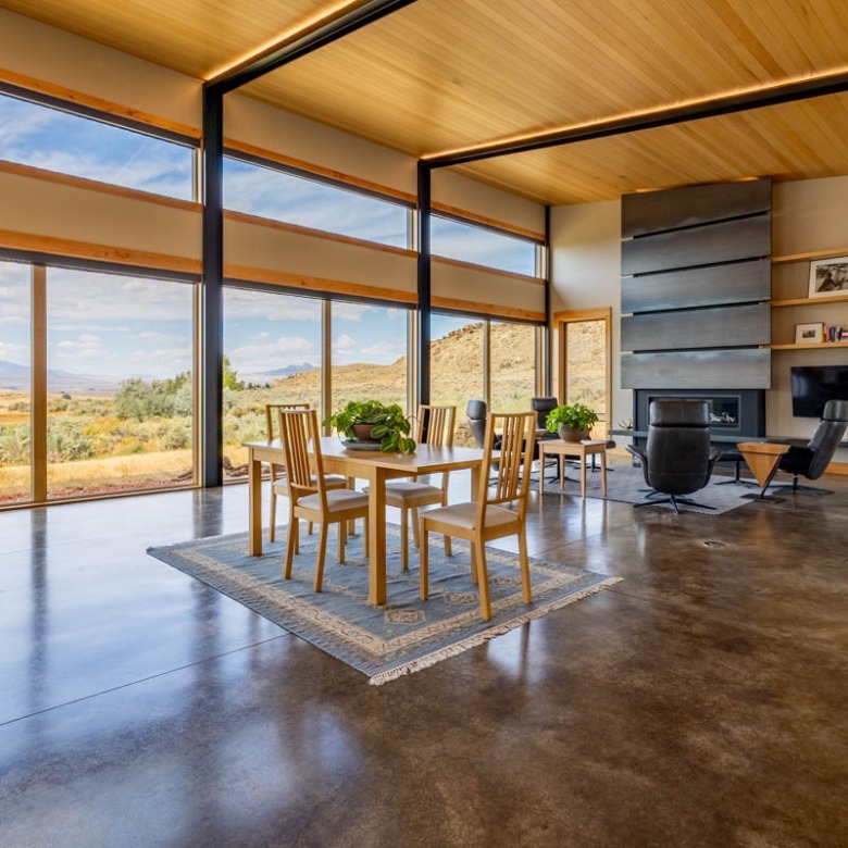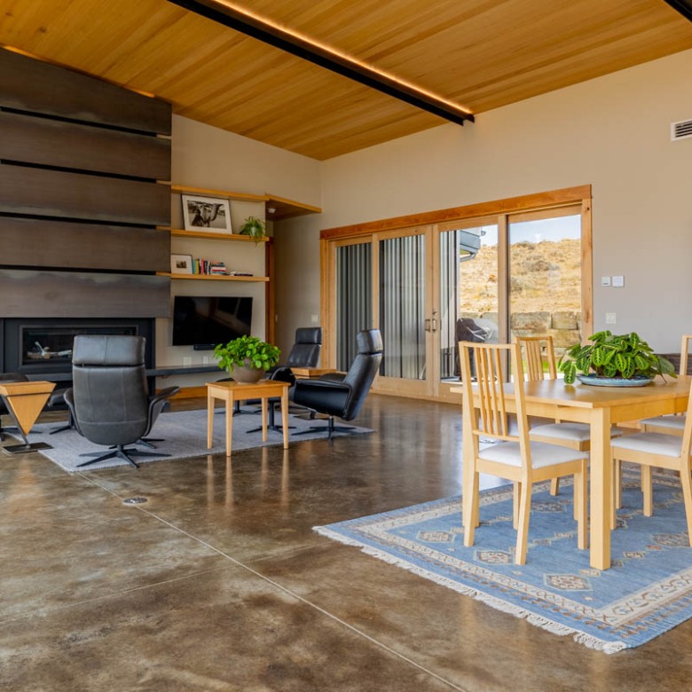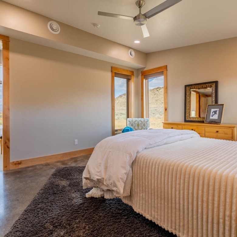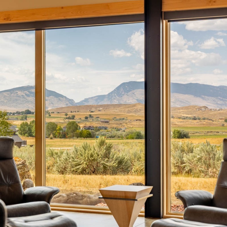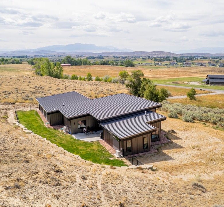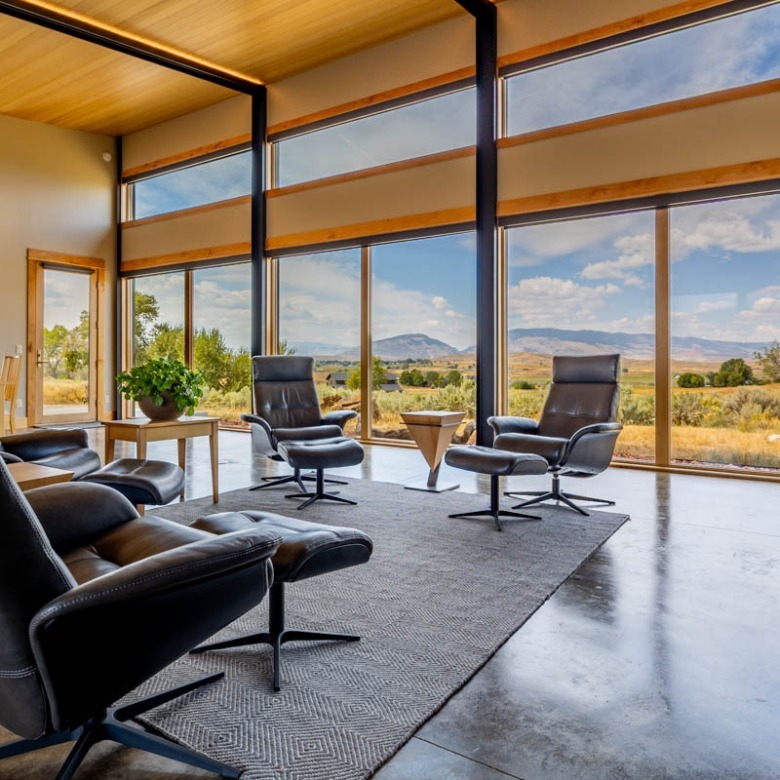 This modern rural retreat is 5 minutes east of downtown Cody, on a stunning 11.5 acre elevated hillside property with approximately 2.5 acres of irrigable land. The house is discreetly tucked into the hillside hidden behind cottonwood trees. Looking westerly, out of the floor to ceiling windows are panaramic views of the mountains surrounding the town of Cody. Part of a lightly covenanted subdivision with large lots it maintains privacy with generous distance from neighbors and welcomes horses and chickens, perfect for rural living. Crafted with exceptional attention to detail, this home was built with structural composite lumber, Rockwool acoustical insulation throughout the home, zero-entry floor plan, with heated stained concrete floors. Enjoy premium appliances, Northwest Rural Water supply with reverse osmosis system, and a 3-bay heated garage. The private, fenced and landscaped back patio and yard provide a protected space with views of the natural landscape surrounding the property. With ample room to upgrade by adding a shop or barn for extra toys or animals, this property is a rare blend of modern sophistication in a rural setting.