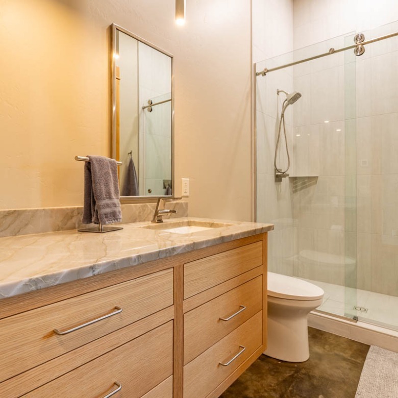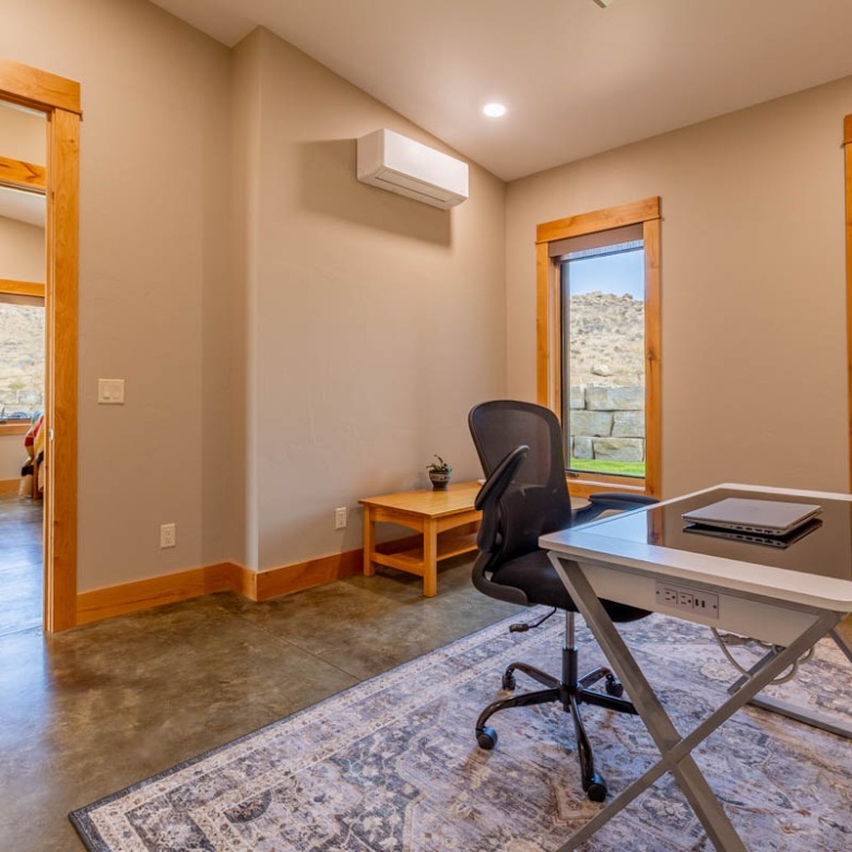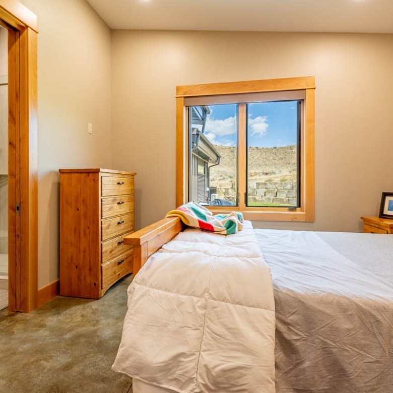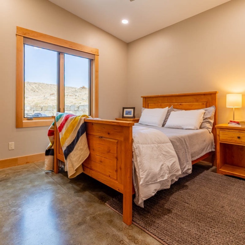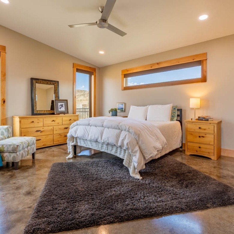 This modern rural retreat is 5 minutes east of downtown Cody, on a stunning 11.5 acre elevated hillside property with approximately 2.5 acres of irrigable land. The house is discreetly tucked into the hillside hidden behind cottonwood trees. Looking westerly, out of the floor to ceiling windows are panaramic views of the mountains surrounding the town of Cody. Part of a lightly covenanted subdivision with large lots it maintains privacy with generous distance from neighbors and welcomes horses and chickens, perfect for rural living. Crafted with exceptional attention to detail, this home was built with structural composite lumber, Rockwool acoustical insulation throughout the home, zero-entry floor plan, with heated stained concrete floors. Enjoy premium appliances, Northwest Rural Water supply with reverse osmosis system, and a 3-bay heated garage. The private, fenced and landscaped back patio and yard provide a protected space with views of the natural landscape surrounding the property. With ample room to upgrade by adding a shop or barn for extra toys or animals, this property is a rare blend of modern sophistication in a rural setting.