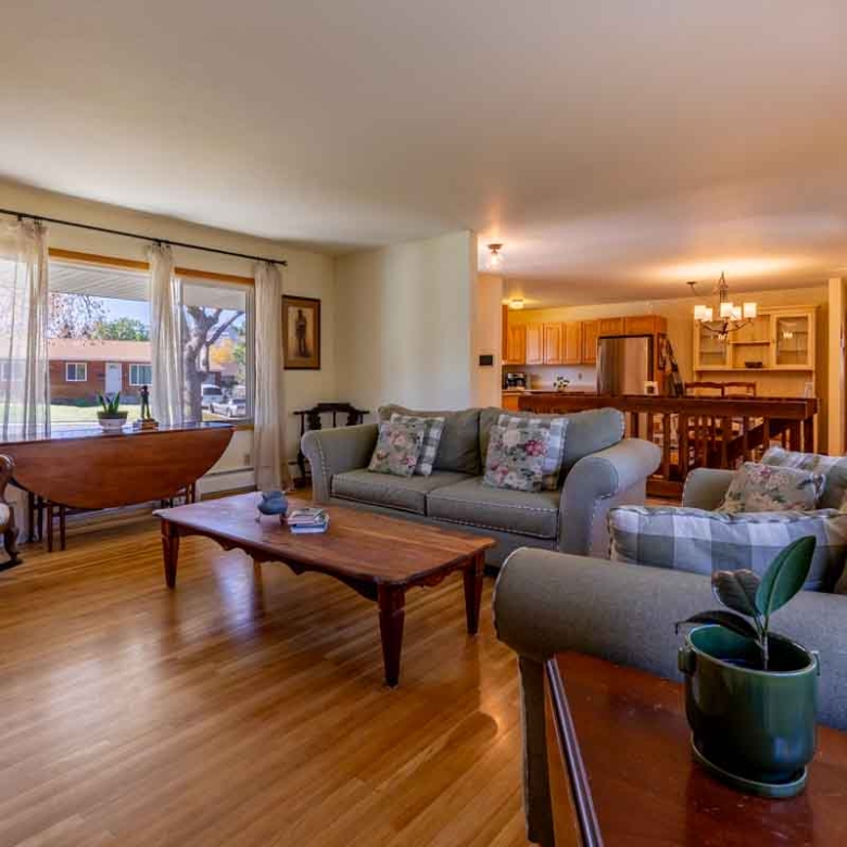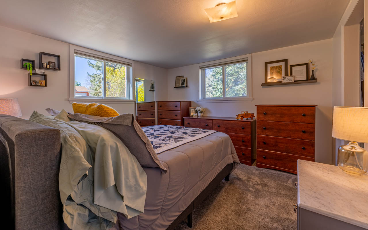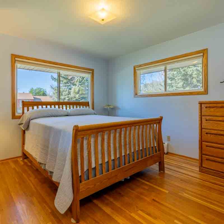 A standout home, this four bedroom, three bath beauty sits on a distinctive corner lot. The house is just around the corner from Highland Manor Park. Main level floors are finished in gorgeous narrow plank oak for a classic look and large windows brim with natural light. Remodeled bathrooms are stylish and inviting. The open kitchen has a perfect work triangle and is equipped with a considerable amount of cabinet and drawer space. Daylight basement offers a second bedroom with ensuite, living space and outdoor access. Exterior features include new upgraded siding, covered front porch, private back patio and lovely back yard. One car oversized garage. This street has a minimal amount of traffic as the location is tucked away from other main routes. This property is refreshingly priced and makes for an effortless move-in.