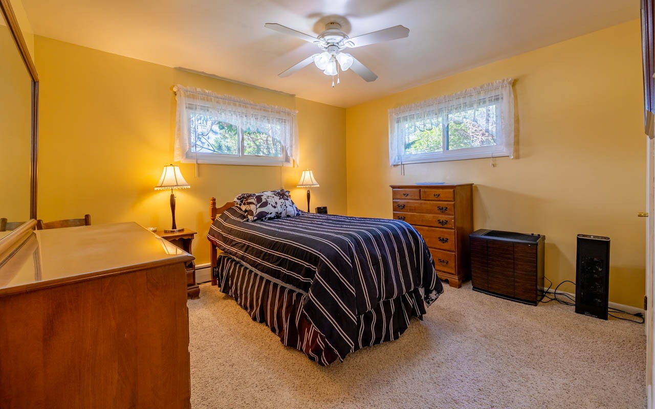 This lovely home is immaculate. Three bedrooms, kitchen and laundry room are all on the main level! Five bedrooms (two in basement do not have full egress windows), two baths (main level bath has been recently remodeled), a detached double car garage, storage shed and fenced yard make this a move in ready opportunity. Beautiful yard, back patio and shaded front deck offer outdoor spaces for grilling, gardening or just relaxing. The kitchen has been sensibly updated, several windows bring in the light, and the den is a dreamy escape with a cozy electric fireplace. Easy to maintain back yard is deer-fenced, has a storage shed and is landscaped with gorgeous perennials. Near shopping, schools and a city park. This is a dynamite property at this price.