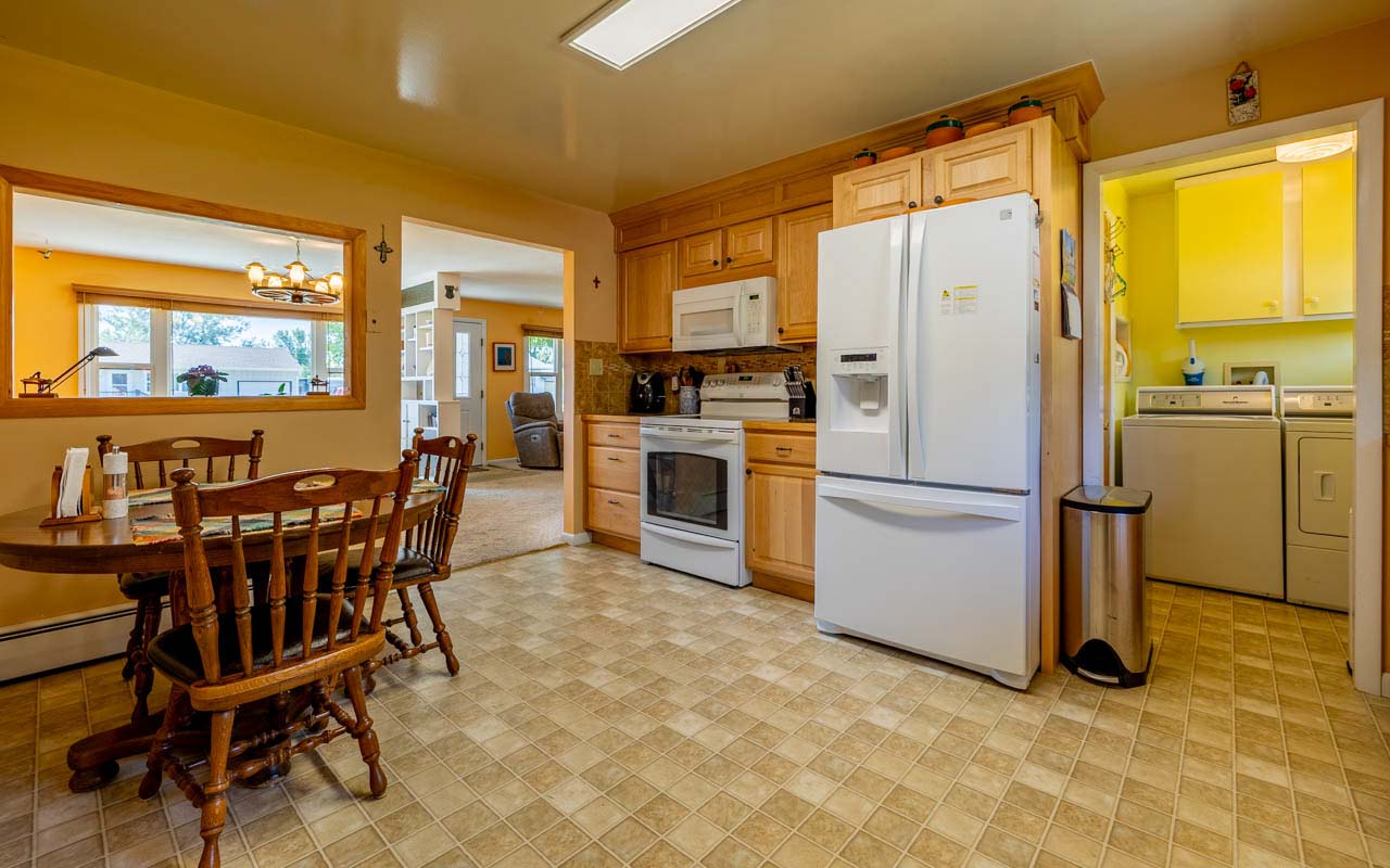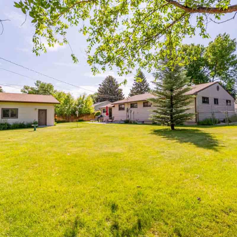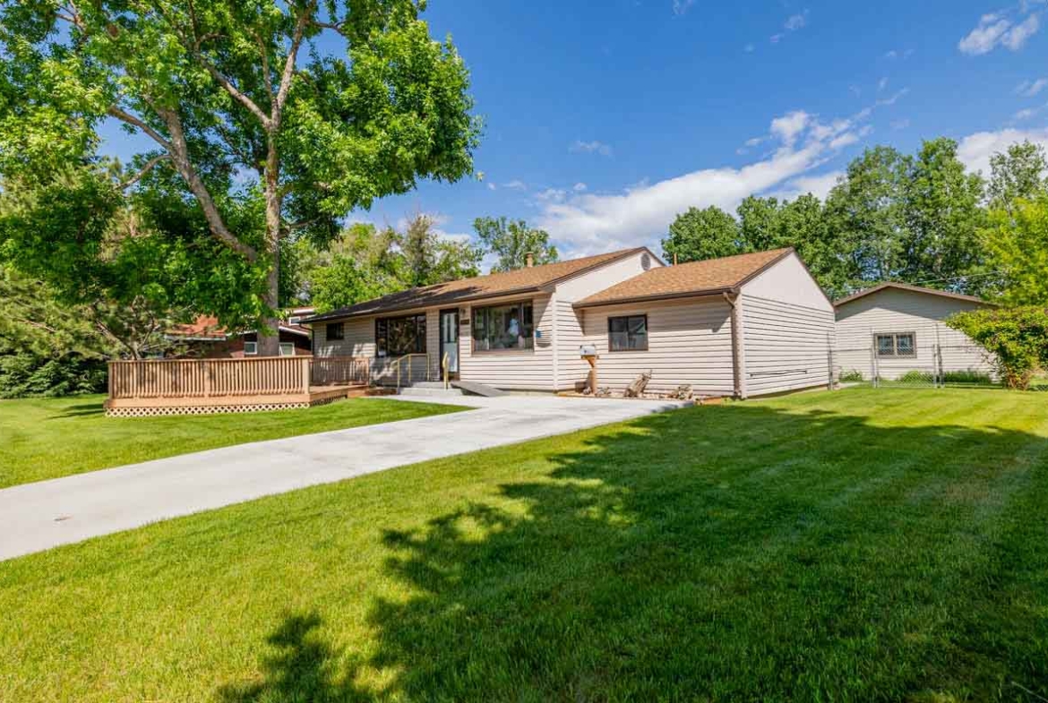 This lovely home is immaculate. Three bedrooms, kitchen and laundry room are all on the main level! Five bedrooms (two in basement do not have full egress windows), two baths (main level bath has been recently remodeled), a detached double car garage, storage shed and fenced yard make this a move in ready opportunity. This is a dog friendly property with a beautiful yard, back patio and shaded front deck offer outdoor spaces for grilling, gardening or just relaxing. The kitchen has been sensibly updated, several windows bring in the light and the den is a dreamy escape with a cozy electric fireplace. Easy to maintain back yard is deer-fenced, has a storage shed and is landscaped with gorgeous perennials. Near shopping, schools and a city park. No HOA!
