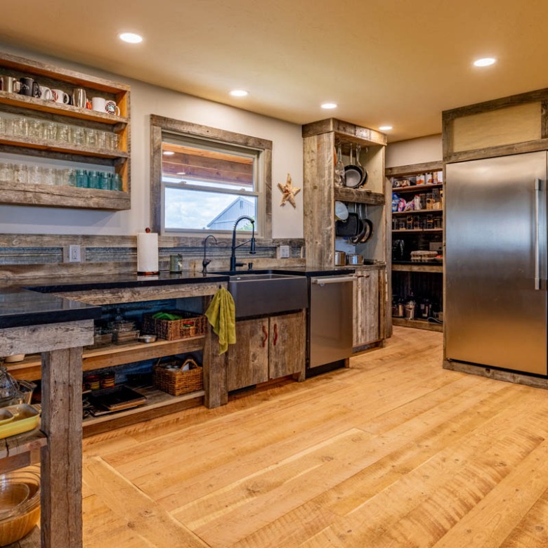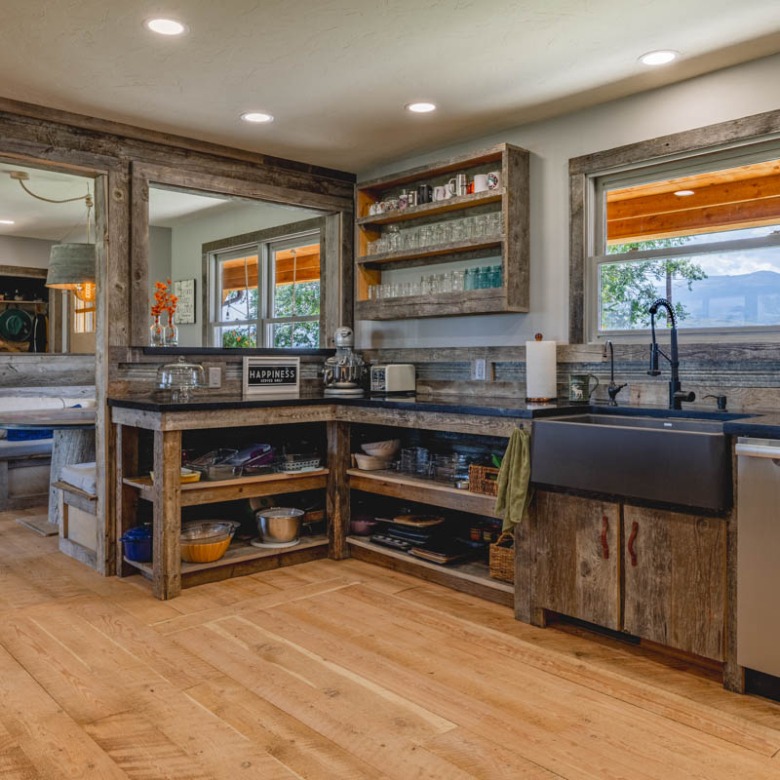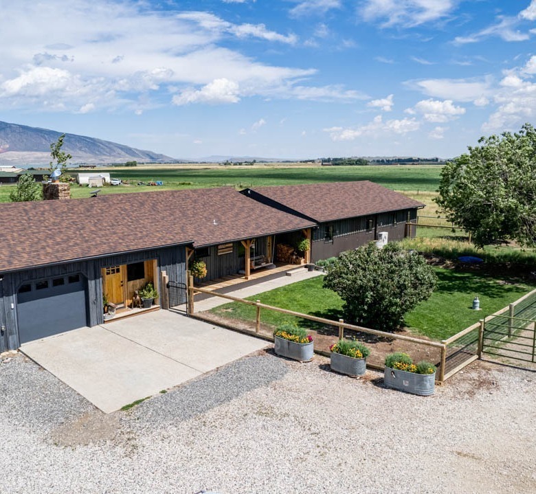 Beautifully remodeled 4638 sf home on 4.56 acres with irrigation rights and lush horse pasture. This home has been thoughtfully redesigned, from the use of reclaimed materials to the improved functionality and modish vibe. In-floor heating, picture windows that pour in views and natural light, modern appliances, wood fireplace, mudroom with built in dog kennels, reading nook, renovated bathrooms, Douglas fir flooring known for its durability, open kitchen is a stunner complete with breakfast bar and pantry. The main gathering space is built for entertaining and opens directly to the back patio where views of the landscape prevail. Shop/barn is a dream- wise design makes this creative space a hang out: work, hobby, relax, reload, chill- the office portion is heated and insulated (has hidden air-conditioning). Make your horses and dogs happy! Own a home that is all comfort and all the rage.